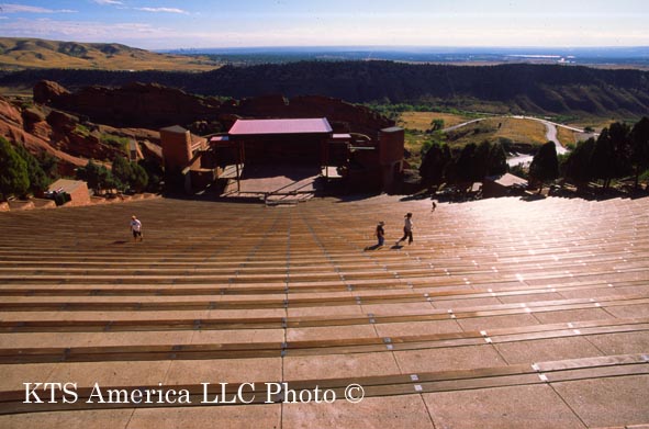 約8,000人が座れるオープンスペースの客席は、円形劇場の形で滑らかに広がった扇型をしており、見下ろすようにステージを臨むことができます。両脇に聳える巨大な岩が音響効果を上げ、声量のある人でしたらステージからマイクロフォンなしで歌っても十分声が響き渡ることが分かります。コンサート時は、スピーカーを設置し、ステージ脇のフレームにスクリーンを吊るして後部シートの観客にも演奏者が見えるように配慮されたりします。