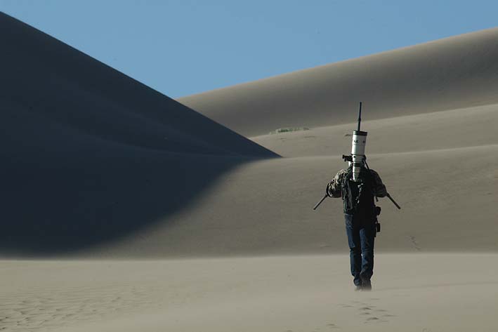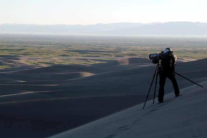 その後の写真人生も、2009年で27年目に入った在米生活(1983年初めにアメリカ合衆国コロラド州移住)の中で健康と環境を考える機会を得たことがきっかけで感性の置き場所が決まった気がしています。2001年に人類史上起こるべくして起こってしまった同時多発テロ事件は私の人生観に言葉で表せないような大きなインパクトを与えました。そんな中、私のどこかで芽を出す時期を待ち構えていたようにしていたエネルギーを刺激したのは、アメリカの屋根と呼ばれるロッキー山脈の中に凄然と存在するサンルイスバレーに横たわる大砂丘の躍動感と厳しいエコシステムでした。 ※ グレートサンドデューンズ国立公園