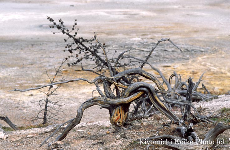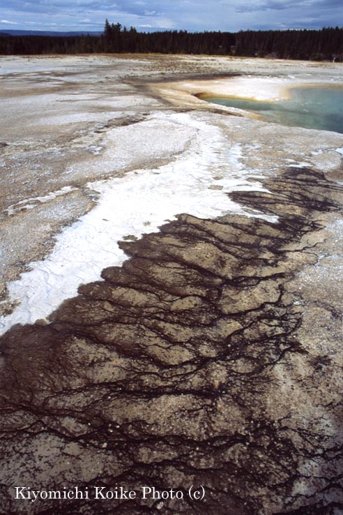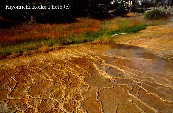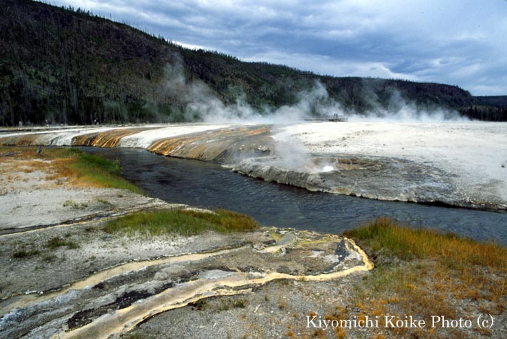ノーリス間欠泉群のトレールからは様々な躍動感溢れる「動き」が見れます。周りを取り囲むようにして