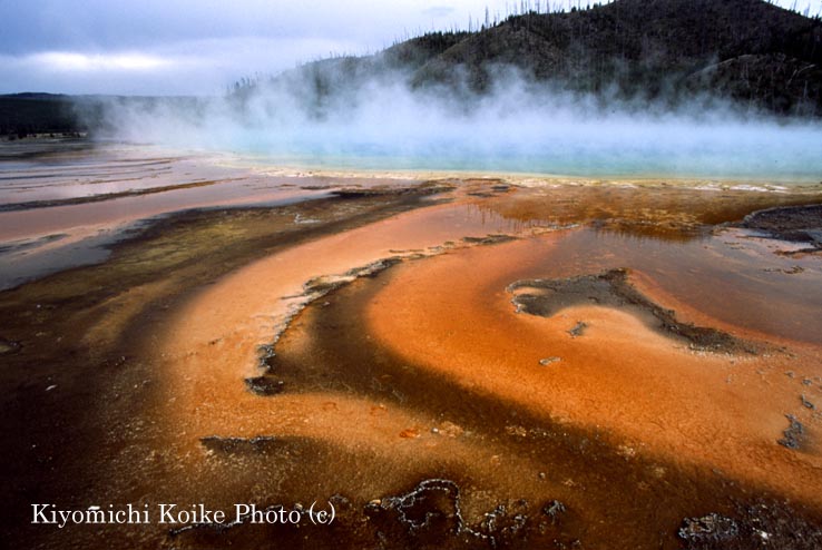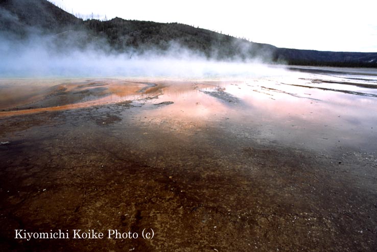 オールドフェイスフル間欠泉群の西側〜北西に延びる道沿いに横たわっています。天候や訪問時間に よって間欠泉たちの表情が変化します。