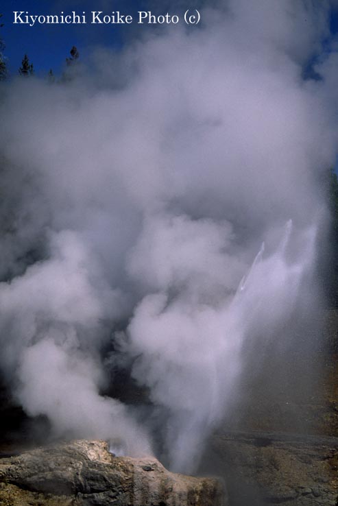 常にお湯を吹き上げ、蒸気を出している間欠泉や数分おき、数時間おき、数日おきに吹き上げるものや