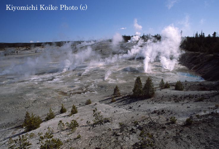 ノーリス間欠泉群 Norris では、公園内でもオールドフェイスフル間欠泉群地域と共に広範囲に渡って