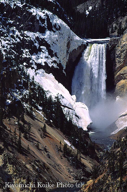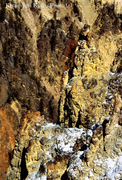 魅了します。その黄色い地肌がイエローストーン独特の渓谷美を際立たせています。