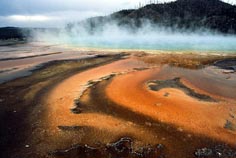 地球上に存在する間欠泉の半分以上(3分の2ともいわれる)が存在するというマグマの躍動感さえ足先から感じらるような熱い場所でもあります。そんな環境下であちこちで動く間欠泉たちはそれぞれの様相や表情を持って迎えてくれます。カルディアを形成するマンモスホットスプリング地域、約75分ごとに30メートル近く熱水を吹上げるオールドフェイスフル間欠泉地域、イエローストーンのグランドキャニオンと呼ばれるキャニオン地域、ノーリス地域、この山岳部の標高では世界一大きいイエローストーン湖と周辺の間欠泉、ブラックサンズベイスン、ビスケットベイスン、ミッドウエイベイスンなど多くの火山の精たちがうごめいているようにも感じられます。